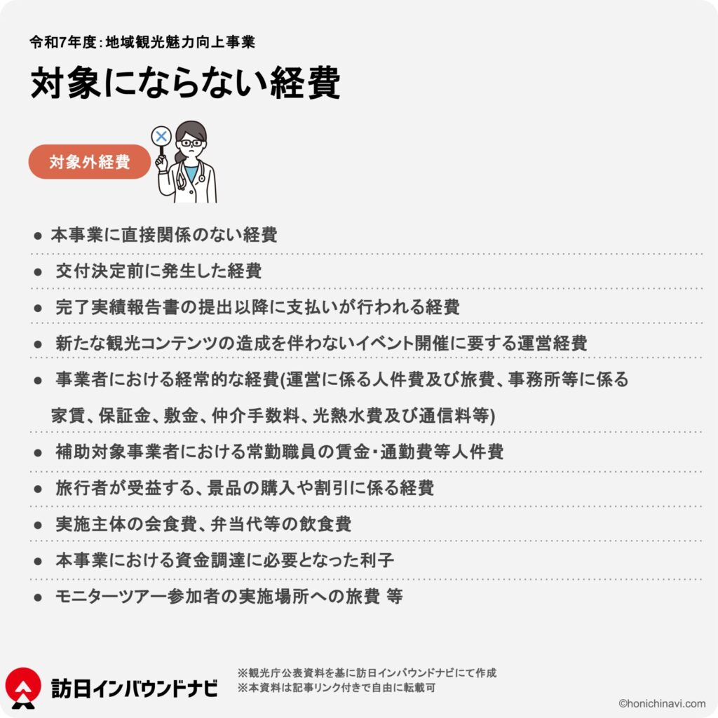 地域観光魅力向上事業の対象にならない経費